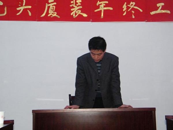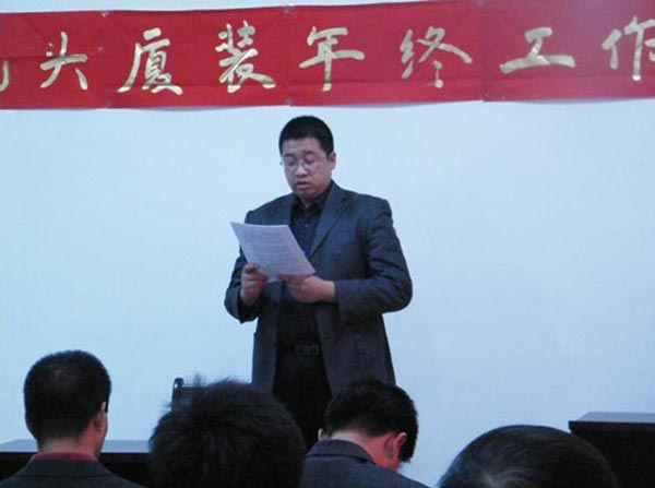 隨著新年鐘聲的臨近,我司于2010年12月31日,下午13:30分在公司三樓會議室召開了2010年年終工作總結(jié)及優(yōu)秀員工表彰大會。此次會議目的既是讓大家對公司成立以來的熬人業(yè)績、明年的整體發(fā)展趨勢、任務(wù)指標(biāo),以及公司對每位職工工作的肯定做了一一講解。營造全體員工團(tuán)結(jié)凝聚、以廠為家、共同奮進(jìn)的氛圍,回顧過去我司做出了當(dāng)年建廠、當(dāng)年投產(chǎn)、當(dāng)年銷售的令人矚目成就。通過此次會議,公司全體同仁堅(jiān)信在大家共同努力下,我司產(chǎn)品必能遍布內(nèi)蒙古中西部及陜北地區(qū),并且在所有同行當(dāng)中永居鰲頭,成為全內(nèi)蒙、全國、全世界第一品牌。